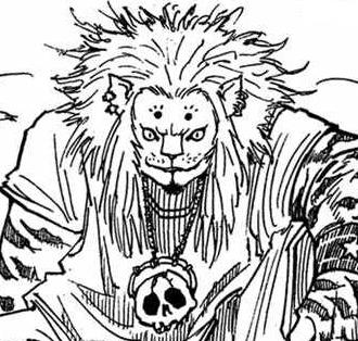 Tout juste après la mort de La Reine et la séparation des Kimeras Ant, au tout début de l'assassinat de plusieurs humains par ces derniers, une journaliste amatrice et anonyme fit un interview pour clarifier ses actes, il répondit sagement à toutes les questions, mais à l'instant où elle dit: "Pouvez vous nous prouvez que vous êtes bien ce que vous prétendez être" (sous-entendant qu'elle pensait que c'était un homme déguisé en lion), il la dévora devant la caméra.