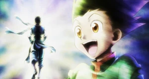 Gon wspina się na szczyt Drzewa Świata,gdzie czeka na niego Ging,nareszcie mogą porozmawiać od serca. Z tej okazji Ging mówi Gonowi o swoich zamiarach,aby zbadać świat poza granicami znanych ludzkości.Gon opowiada mu o wszystkich swoich przygodach i przyjaciołach,którzy sami realizują swoje cele i marzenia.