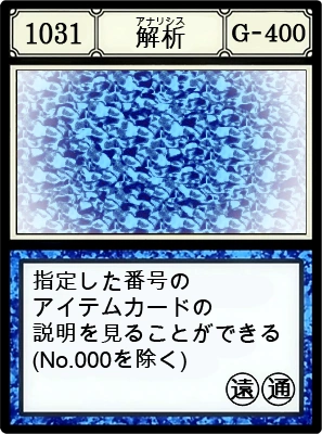 | 指定した番号のアイテムカードの説明を見ることができる(No.000を除く) | |||||||