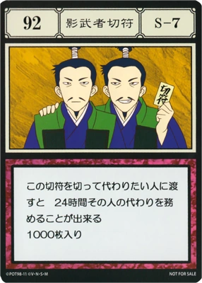 | この切符を切って代わりたい人に渡すと、24時間その人の代わりを務めることができる。1000枚入り。 | ||||