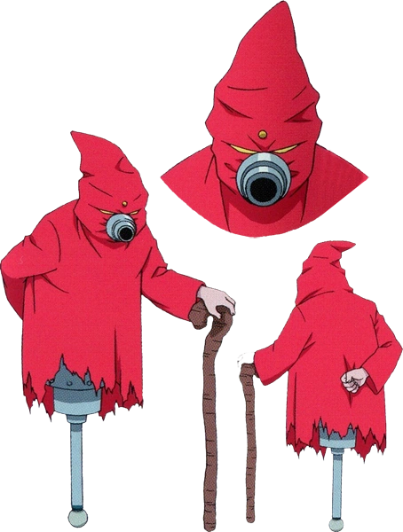Безногий калека, вынужденный носить защитный балахон и дыхательную маску. Передвигается на 1 (одном) металлическом протезе с помощью трости.