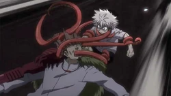 Однако Киллуа стал мишенью близнецов Оросо, которые ещё сильнее ранили его, хоть мальчику и удалось выманить их из под воды и прикончить. Так как из-за блошиной слюны кровь Киллуа не останавливалась, раны сильно кровоточили, он лишился сил и уже готовился умереть, когда Икалго подхватил решил его спасти в благодарность за хорошее отношение.