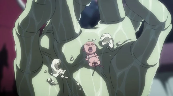 Когда уже приблизился срок рождаться Меруэму, он потерял терпение, прорвал плаценту и выбрался из своей матери, серьёзно повредив её внутренние органы. Никто из Муравьёв-химер, служивших Королеве не мог помочь ей, а Неферпиту отказался. Тогда Кольт обратился к Морау и Нову за помощью и Нетеро приказал отправить к Королеве команду медиков. Однако, спасти Королеву не удалось, что повергло Кольта в отчаянье. Ведь он в очередной раз не смог защитить своего близкого. Внезапно он заметил, что во внутренностях Королевы происходит какое-то шевеление. Кольт аккуратно извлек малюсенького младенца и понял, что ему дан ещё один шанс. Морау и Нов позволили Кольту взять малыша на воспитание, при условии, что они никогда не станут охотиться на людей.