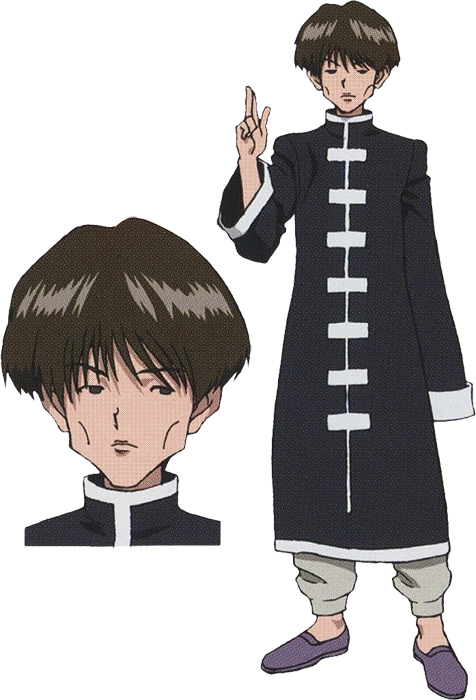 Азиат невысокого роста с ровным каре в традиционном китайском балахоне и шароварах.