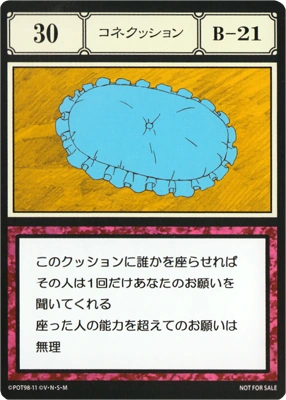 | このクッションに誰かを座らせれば、その人は1回だけあなたのお願いを聞いてくれる。座った人の能力を超えてのお願いは無理。 | ||||
