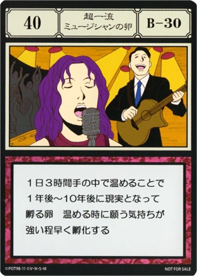 | 手の中で毎日3時間温めることで、1~10年後に現実となって孵る卵。温める時に願う気持ちが強い程、早く孵化する。 | ||||