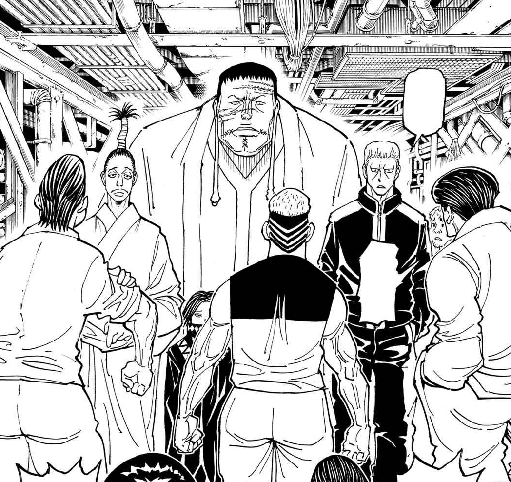 After the three thugs are beaten by Phinks, Nobunaga, Feitan, and Franklin. The Bour Family explains to the Phantom Troupe members about the three great Mafia families of Kakin (Xi-Yu, Heil-Ly, and Cha-R) and how to reach the upper levels to reach the heads of the three families. Phinks also commands them to note down the room number of anyone taller than 190 cm (6′2″).[1] However, no one of that height is on Tier 5.[2]