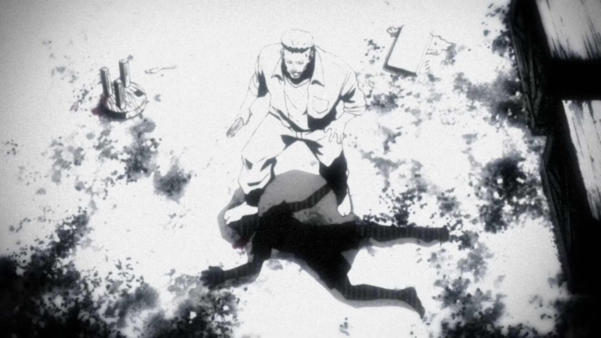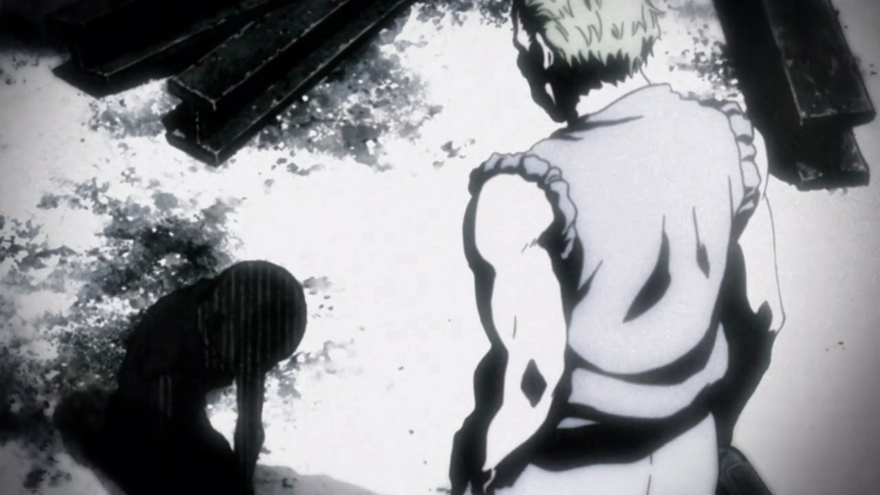 However, Gyro’s feelings toward his father shift drastically when a coworker reveals the harsh truth: the only reason his father kept him around was for the money he brought home, and it wasn’t his father but a kind neighbor who had cared for him during the fever that nearly took his life; his father made no effort to care for him. The revelation shatters Gyro’s perception of his father, and in a fit of rage, he attacks the man who exposed the truth. Overcome by primal fury, he lashes out at the man who revealed the truth, only to be overpowered and beaten mercilessly. Gyro looks up to see his father walk past without a second glance, offering no help or concern. Gyro finally understands: his father never cared for him, and the values he preached were nothing more than selfish manipulations.