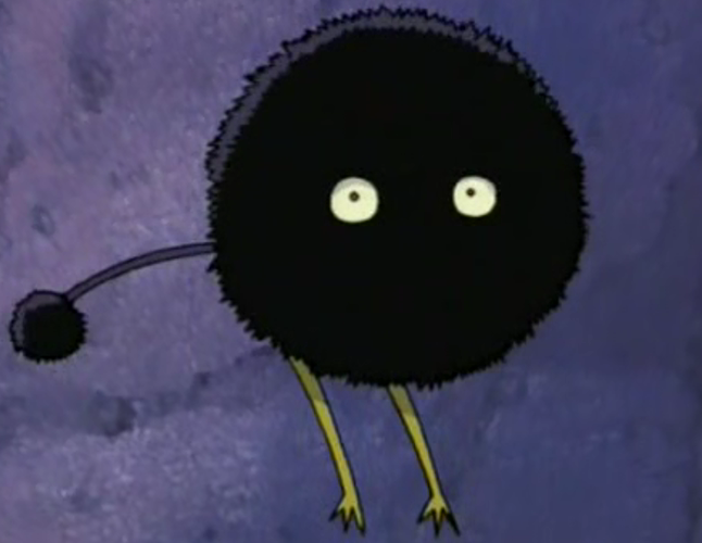 It looks like a small black round fluffy puffball with a tail and skinny legs. Its attacks are weak[1] but the creature has a durable body.