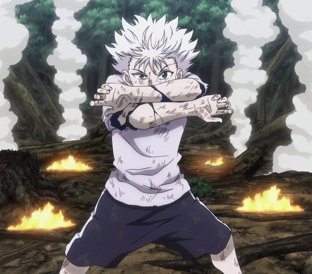 During the events of the Chimera Ant arc, Killua demonstrates great maturity in thinking and controlling his emotions, able to recall his instructions even when suddenly facing a far superior opponent with an injured ally, in sharp contrast to Gon who immediately gets angry and blindly seeks revenge without considering his inferior capabilities.