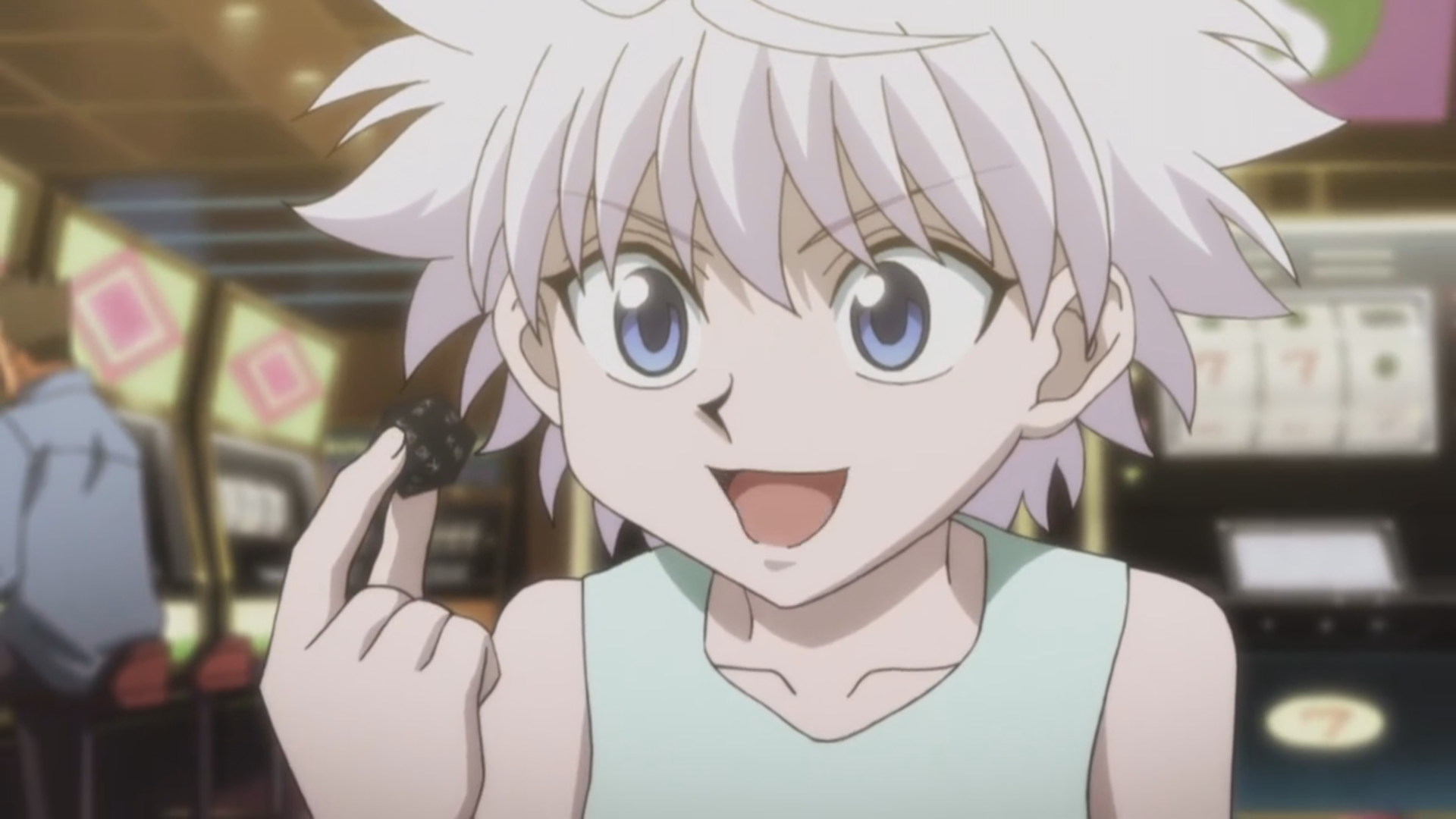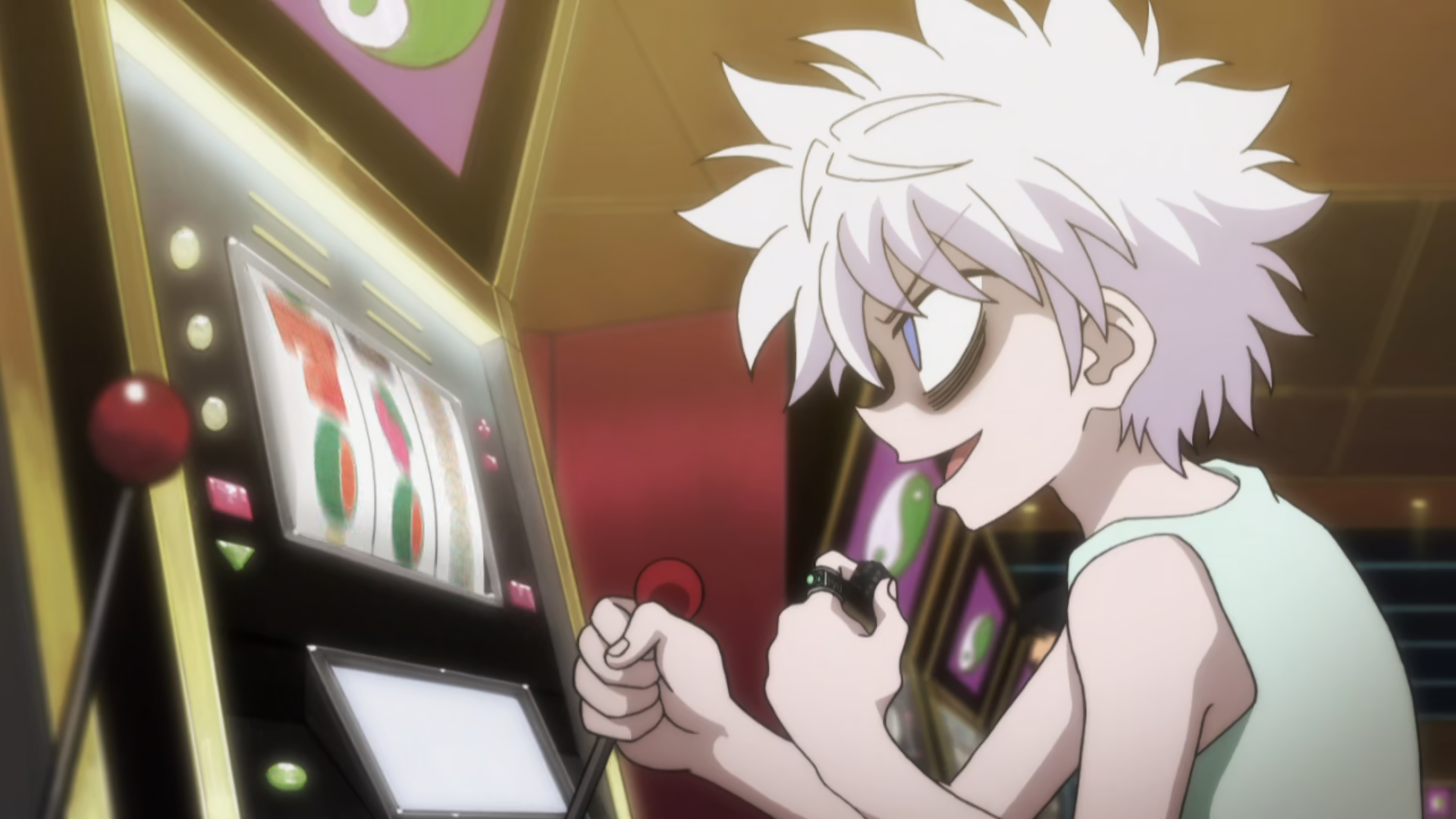 During the events of Greed Island, Killua has shown to be highly susceptible to gambling, even risking his life for a big slot machine reward, only stopping when Biscuit physically hit him.