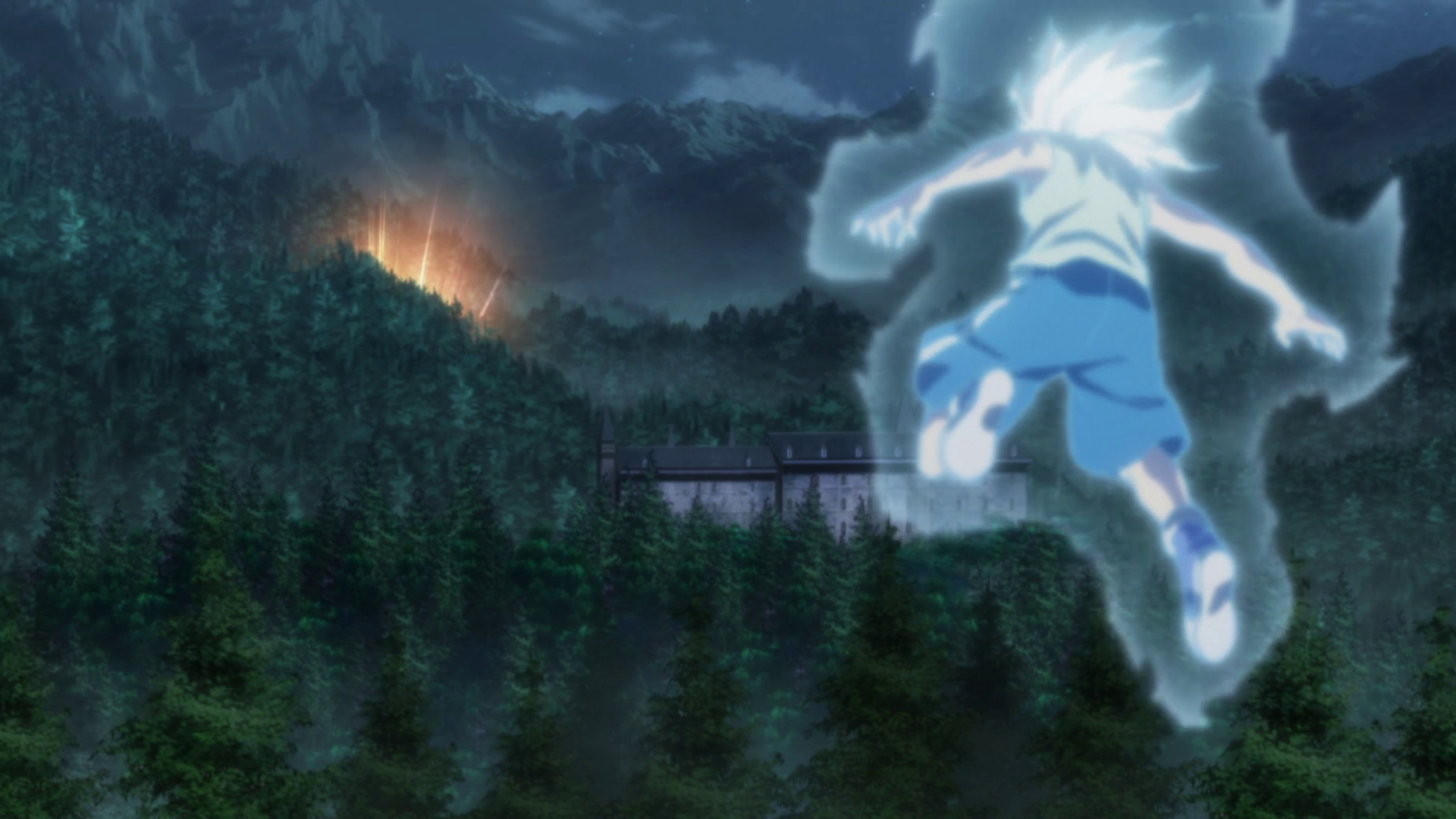 Killua makes it to the Visca Forest Preserve, the site of the second trial, which the applicants reach five minutes before noon. He is pleasantly surprised to see that Gon got there, and stumped by his declaration that he followed his friend's cologne. The rumbling sounds come from inside the building cause Killua to assume there is some kind of beast inside, but, when the doors open, it turns out to be Buhara's stomach. The examinees meet Gourmet Hunters and proctors Menchi and Buhara, who reveal the Second Phase entails cooking. Buhara requests a whole roast pig from each applicant, but the only one in the preserve is the world's most dangerous pig. Nonetheless, Killua and Gon's friends easily complete the task[24] along with 66 other applicants. However, Menchi baffles the examinees when she requests they make sushi, as none of them knows what it is. He almost fails the trial,[25] but passes the amended phase when Chairman Netero intervenes. The test is taken to Split Mountain where examinees hunt for Spider Eagle eggs. At the end of this stage, there are 42 applicants left, among whom is Killua.[26]