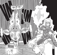 An ability Kurapika stole from Sayird via his index finger chain[94] before giving it to Oito.[97] The user launches an aura ball at a bug or any other small living being, capturing and gaining control over it. The largest creature the user can control is about the size of a hamster. The user gains knowledge of anything the manipulated animal sees or hears. For this reason, the ability is particularly useful when utilized on flies or mosquitoes, but since they have many natural enemies, they often die while under the effect of the ability. Faster animals may be hard to catch. The ability cannot be used on living beings conjured via aura.[94] The controlled animal maintains the user's capability of seeing aura. This ability seems to consume very little aura, as even someone who was originally not a Nen user could maintain it for one hour without visible strain.[101] Furthermore, it is not deactivated if the user passes out. It was returned to Sayird after one use.[102] |