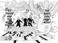 After listening to the rest of his explanation concerning parasitic type Nen, Kurapika concludes the real battle will start once all princes are back from the ceremony.[95]