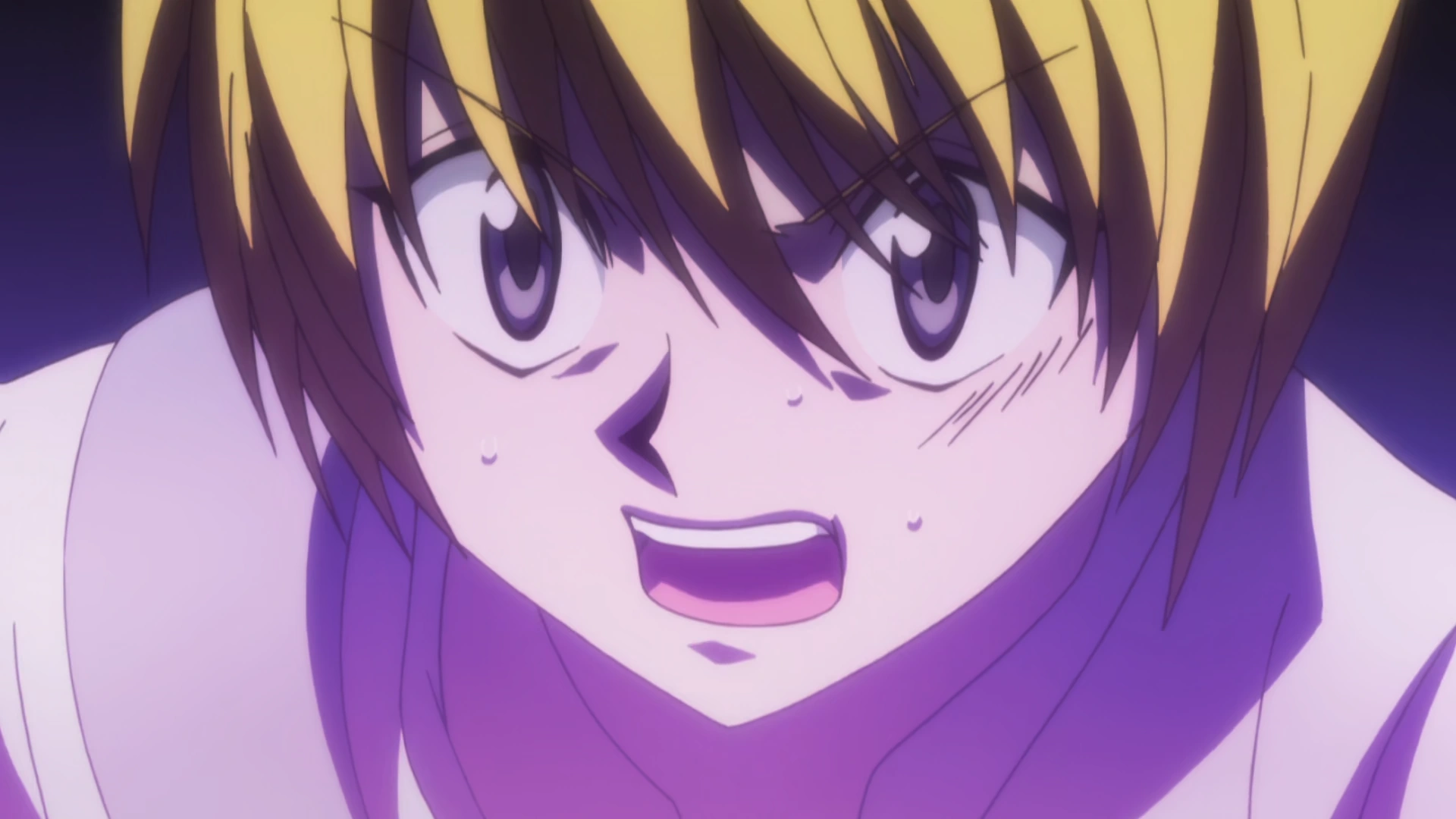Satotz warns them of the dangers and tells them to follow him through the swamp in another marathon. On the way, Kurapika, Leorio, and a number of other candidates are attacked by Hisoka, a man notorious for his bloodthirstiness.[11] All of them are killed in a short time, except for him, Leorio, and Cherry, examinee #76. Knowing that they have no chance of winning against Hisoka, they split up in 3 different directions. After a while, Kurapika returns and sees Gon kneeling there with a shocked expression on his face.[12] While running together to the site of the Second Phase, the Visca Forest Preserve, Gon tells him about what happened to him and Leorio.[13]