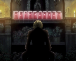 After Killua returns to Greed Island, he informs Kurapika of the possibility that the Judgment Chain on Chrollo was removed. However, Kurapika assures Killua that it is still staying in Chrollo's body. After that, he has a short conversation with Light Nostrade, who is in a state of great confusion due to the loss of his daughter's prophetic ability.[81]