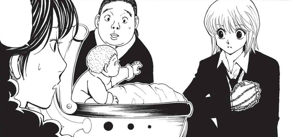 Sometime later, Kurapika boards the ship with Oito and Woble. He repeats the security measures before thinking to himself that the battle strength of his side is weak, especially since some Hunters may be spies. He has a phone conversation with Mizaistom, during which the latter informs him of the conditions of the three lower decks, leading Kurapika to think the meeting of the Zodiacs will be called off. He warns Oito that if something unexpected happens, they may be able to flee to the lower decks, escaping the succession war. While he contacts the system control room, he is startled by aura radiating off Woble's cradle.[91]