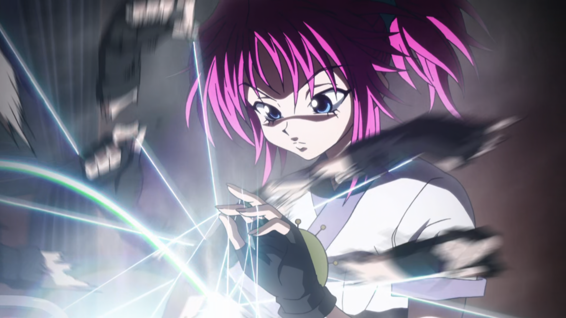 Enhanced Strength: The fact that she ranked sixth in arm-wrestling within the Phantom Troupe is a testament to her brawn.[4] She can easily lift several adult men, hung by her wires,[13] and managed to immobilize a physically strong individual like Killua by wrapping her arms around him.[35]