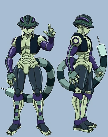 - Meruem shares traits with some of the main villains from the Dragon Ball series. Meruem's appearance vaguely resembles Frieza's (namely, the deltoids and shins being purple), and more greatly mirrors Cell's (his hands, tail & color scheme of green & purple). His characterization is possibly inspired by the villains of the Dragon Ball series as well. Meruem's initial belief that his natural strength gave him the right to lord over the human race, as well as him killing his subordinates and treating them as disposable commodities, made him similar to Frieza (who did the same, and sought dominion over the whole universe). Like Cell, he had an interest in testing his abilities and sought improvement; as such, he challenged those who were the best in their field like Netero and Komugi (similar to how Cell started the Cell Games). He was also born to be an ultimate being, much like how Cell was born from the collection of the mightiest fighters in the Dragon Ball series, at the time. Also like Cell, Meruem nearly perished in a massive explosion, only to return in a more powerful state. Meruem's relationship to Komugi is also reminiscent of Majin Buu's relationship to Mr. Satan; a supremely more powerful character who is reined in by someone significantly weaker than them. Buu's change of character also started with a meeting with a blind person too, similar to Meruem's meeting with Komugi.
