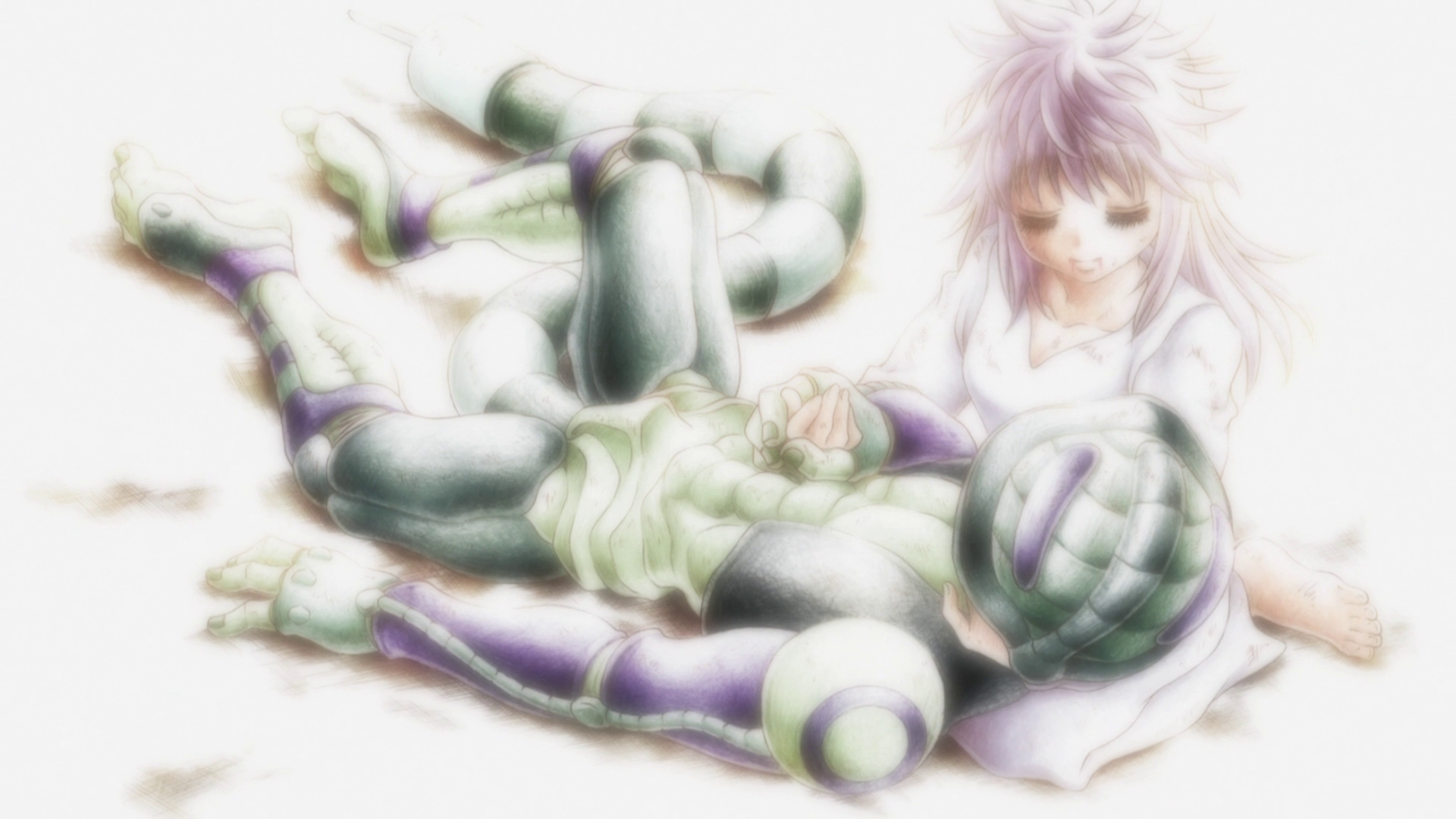 Meruem is seen holding Komugi's hand, even in death.[51]