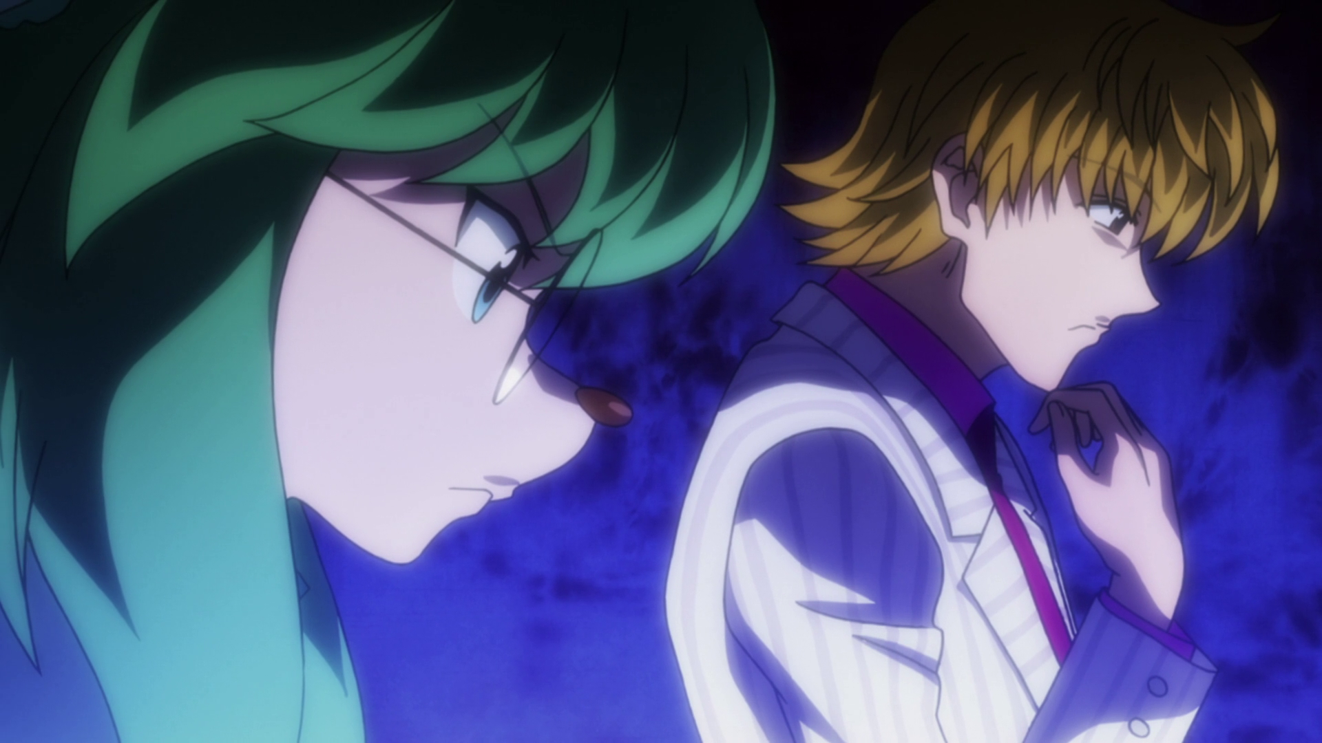 It is revealed by Ging that Pariston has no intention of winning or losing the Chairman Election and that Pariston only wants to play with the hybrid cocoons the Chimera Ants had left around, and an area to play with them in.[13] As the eighth round starts, the last 4 candidates are given a chance to explain to everyone why they want to become chairman. When it is Cheadle's turn, she asks everyone to vote for Leorio, by which Pariston is surprised, losing his trademark smirk.[14]