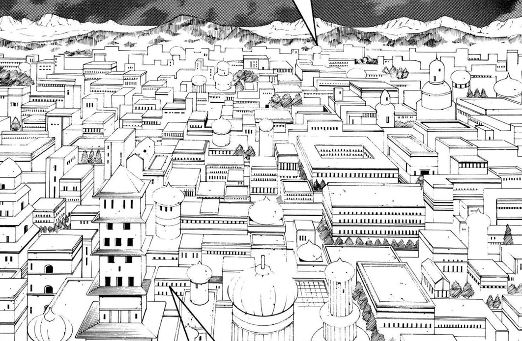 Peijin (ペイジン, Peijin; also Peijing in the anime)[note 1] is the capital city of the Republic of East Gorteau, located on the Southeastern end of the country.[1] Ming Jol-ik, Supreme Leader of the country, lives in a palace just outside of the city. After the Chimera Ants covertly seize power of the country, Neferpitou manipulates Ming Jol-ik's body to have the nation's citizens all assemble in Peijin.[2]