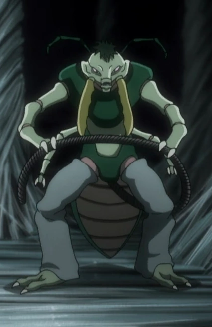 As a Chimera Ant, he is already stronger than the average human. His exoskeleton appears to be rather durable, although his exposed joint can be exploited to attack. He has shown some skills at using a steel rope to fight and restrain his opponent.