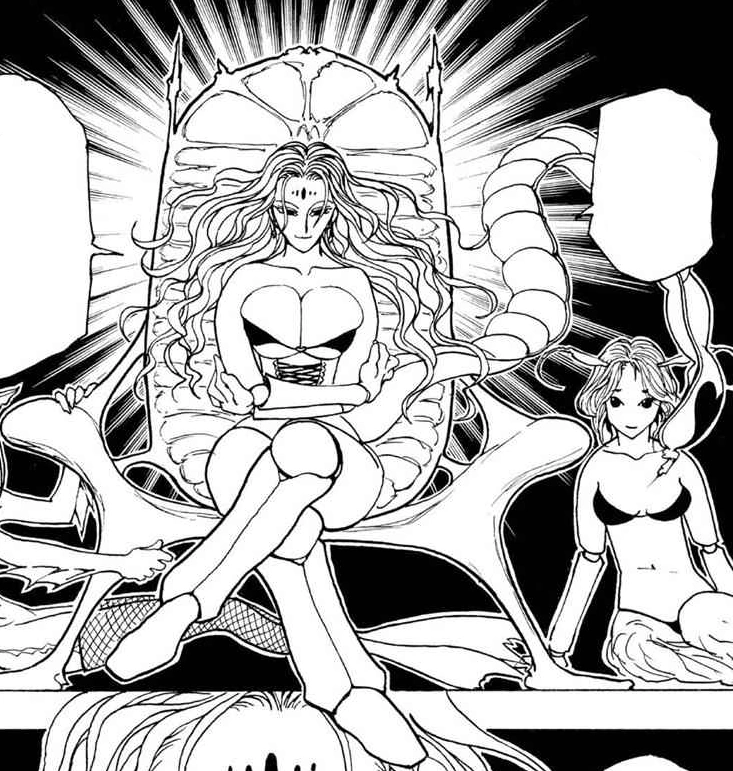 Zazan presents herself as the Chimera Ant Queen to Feitan