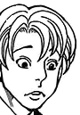 Giuliano is a young man with straight, blond, middle-length hair, which he wears either combed[2] or messy.[3][1] He has a more slender build and is about half a head shorter than 伊兹拿比.[4] As a Royal Bodyguard, he dresses in a black suit and tie. On the top left of his suit is a capital H.[2] Since Prince Tyson hires her bodyguard based on their looks, Giuliano is probably considered attractive.[5]